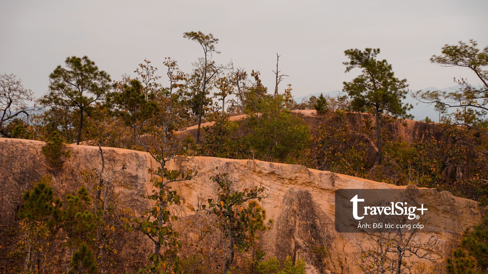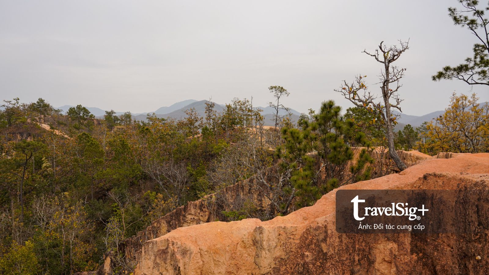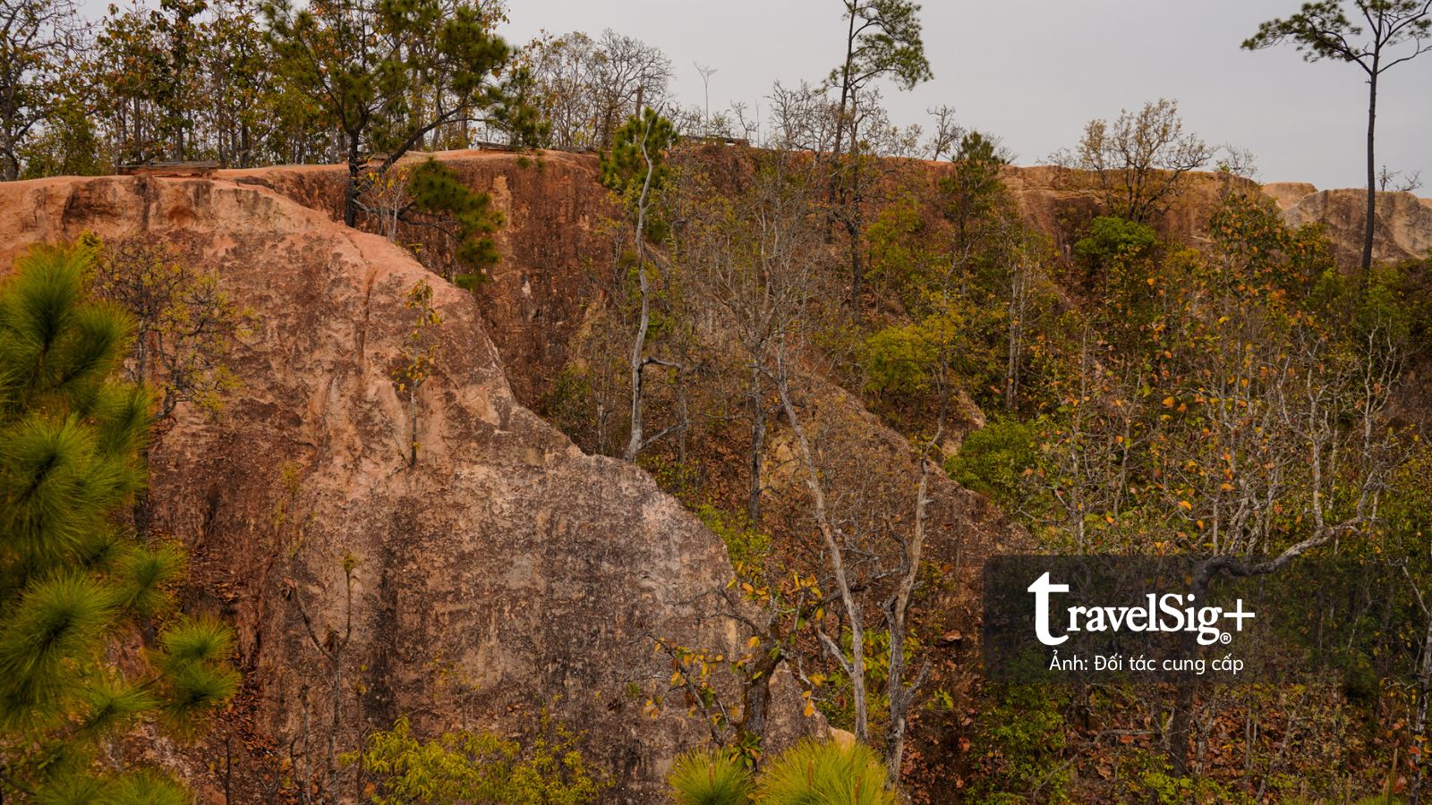 Địa hình nơi này là kết quả của quá trình xói mòn do gió và mưa qua hàng ngàn năm, tạo nên những rãnh sâu và những con đường mòn nhỏ hẹp uốn lượn trên đỉnh vách đá sa thạch với sắc độ đỏ cam lạ mắt. Từ độ cao khoảng 30m so với thung lũng bên dưới, chúng tôi có thể phóng tầm mắt bao quát toàn cảnh thung lũng Pai hùng vĩ.