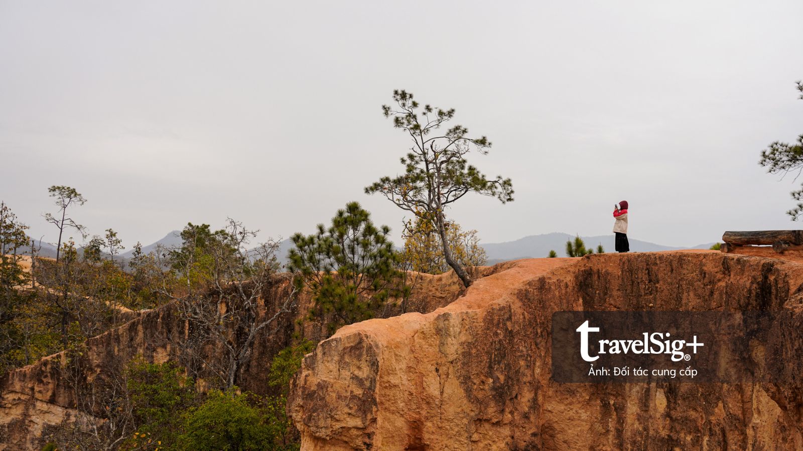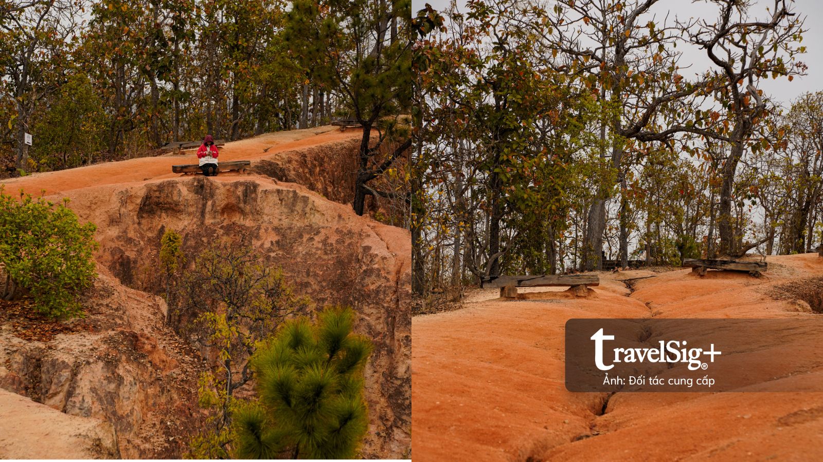 Đặt chân lên hẻm núi, mở ra trước mắt chúng tôi là một tầng không gian khoáng đạt, không còn bị che chắn bởi cây cối hay những công trình đô thị. Rừng cây và thung lũng nằm thấp ở phía dưới, nhường chỗ cho những dải đất đỏ cam chạy dài, cắt ngang sắc xanh của đại ngàn.